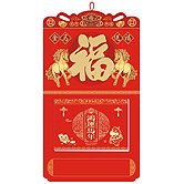 - 特度對(duì)開(kāi)中國(guó)紅金雕窗花掛歷